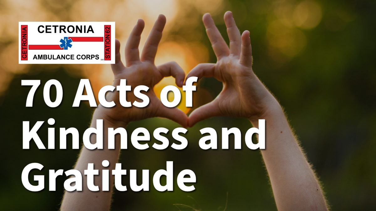 This November, as we celebrate both Thanksgiving and our 70th anniversary, we’re reflecting on the incredible kindness that’s fueled Cetronia Ambulance Corps since 1955. For seven decades, our community’s support has kept our mission alive, and in honor of that, we’re encouraging 70 Acts of Random Kindness and Gratitude throughout the month!