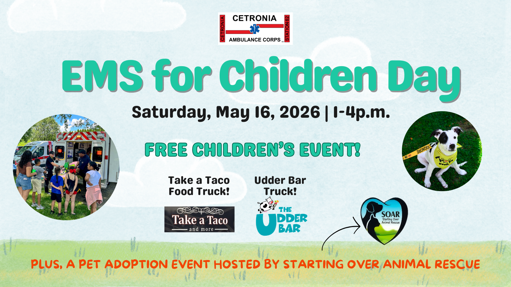 EMS for Children Day is a free community event held during EMS Week, dedicated to celebrating our incredible team while educating children about emergency medical services in a fun and engaging way. Families can explore our ambulances and emergency vehicles, meet Andy the Ambulance, enjoy games and activities, listen to music, and grab food & ice cream from The Udder Bar and Take a Taco (1-3pm)! This outdoor event takes place at our main facility (4300 Broadway, Allentown, PA 18104) and is open to everyone at no cost. Don’t miss this exciting opportunity to learn more about EMS!